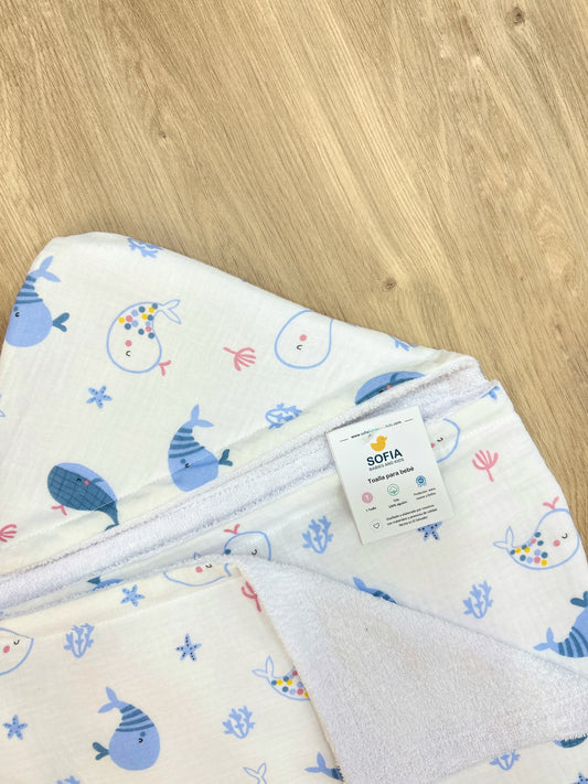 Toalla para bebé de 0 a 1 Ballenita Azul BB