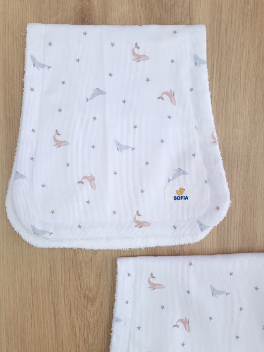 Set de 2 baberos. Rosa Salmón, Estrella Blanca