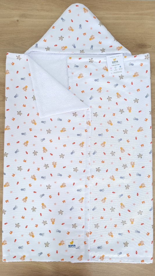 Rosado suave, 3 botones, gorro con pompon. 0M