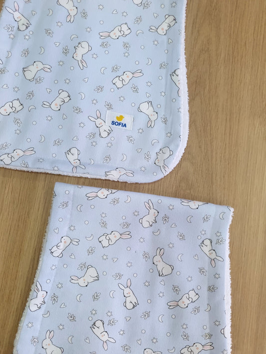 Set de 2 saliveros. Azul con Conejitos
