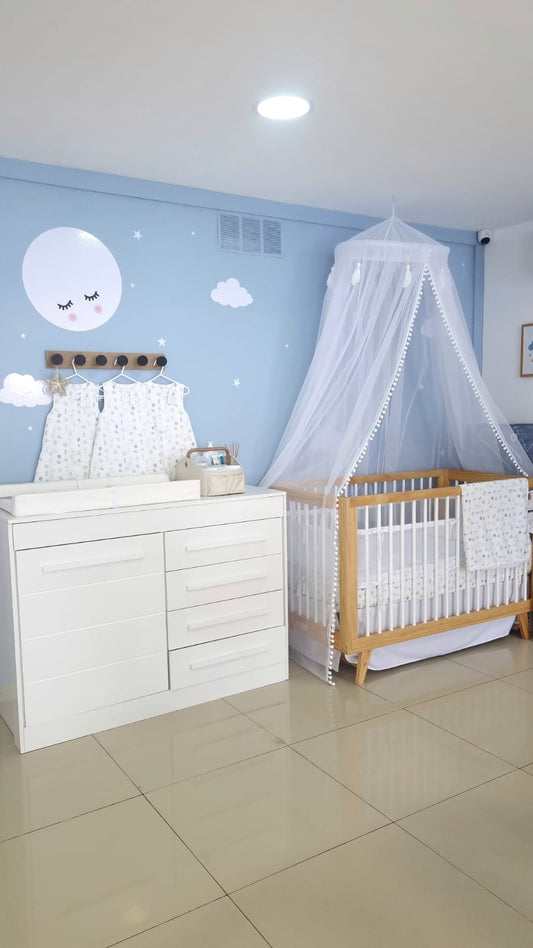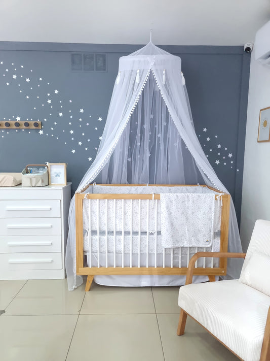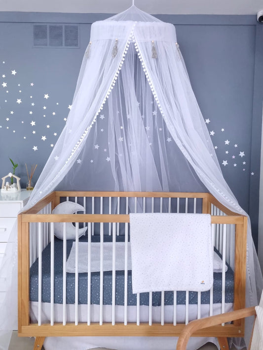 Mosquitero de cuna. Maderas y Tassels Blancos