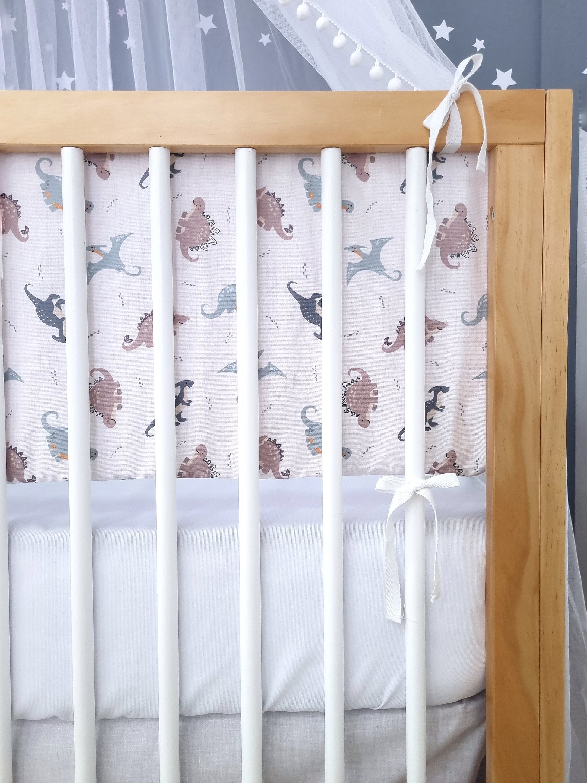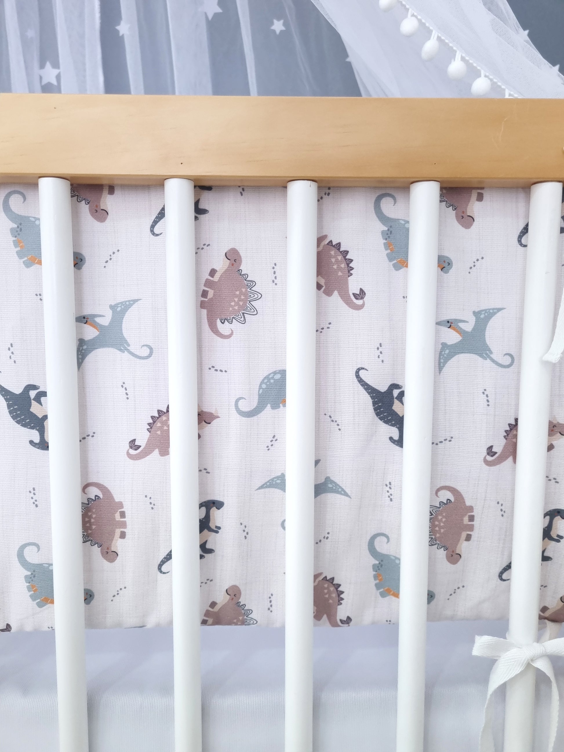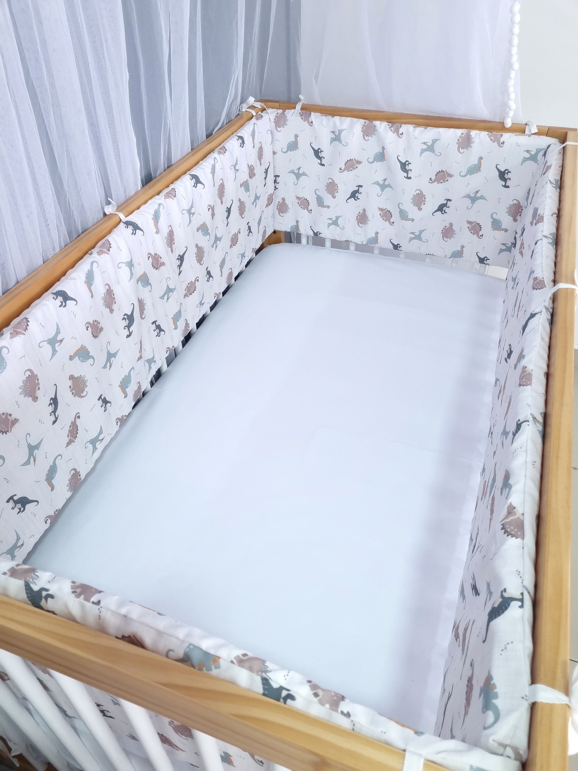 Recomendamos dejar una separación de 4 dedos entre el protector de cuna y el colchón para que la cuna esté bien ventilada y puedas observarlo.