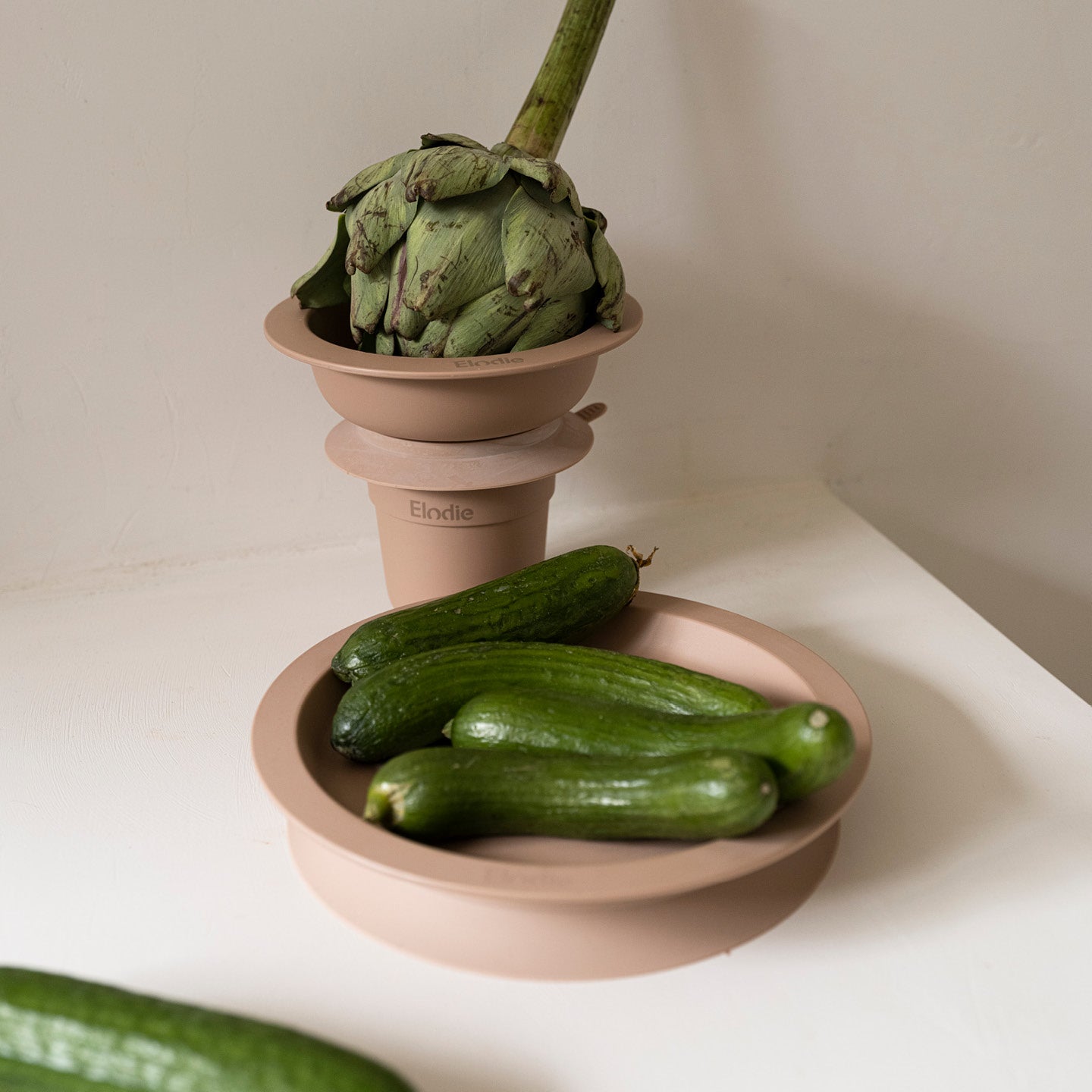 Las ventosas inteligentes y extraíbles hacen que el recipiente y el plato se adhieran a cualquier superficie plana y ayudan a los comensales primerizos a aprovechar al máximo sus comidas.