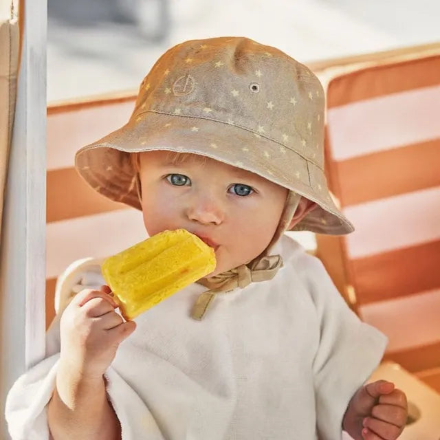 - Protege contra los rayos UV y cubre y protege la piel expuesta, especialmente el cuello, la espalda y los hombros de su hijo.