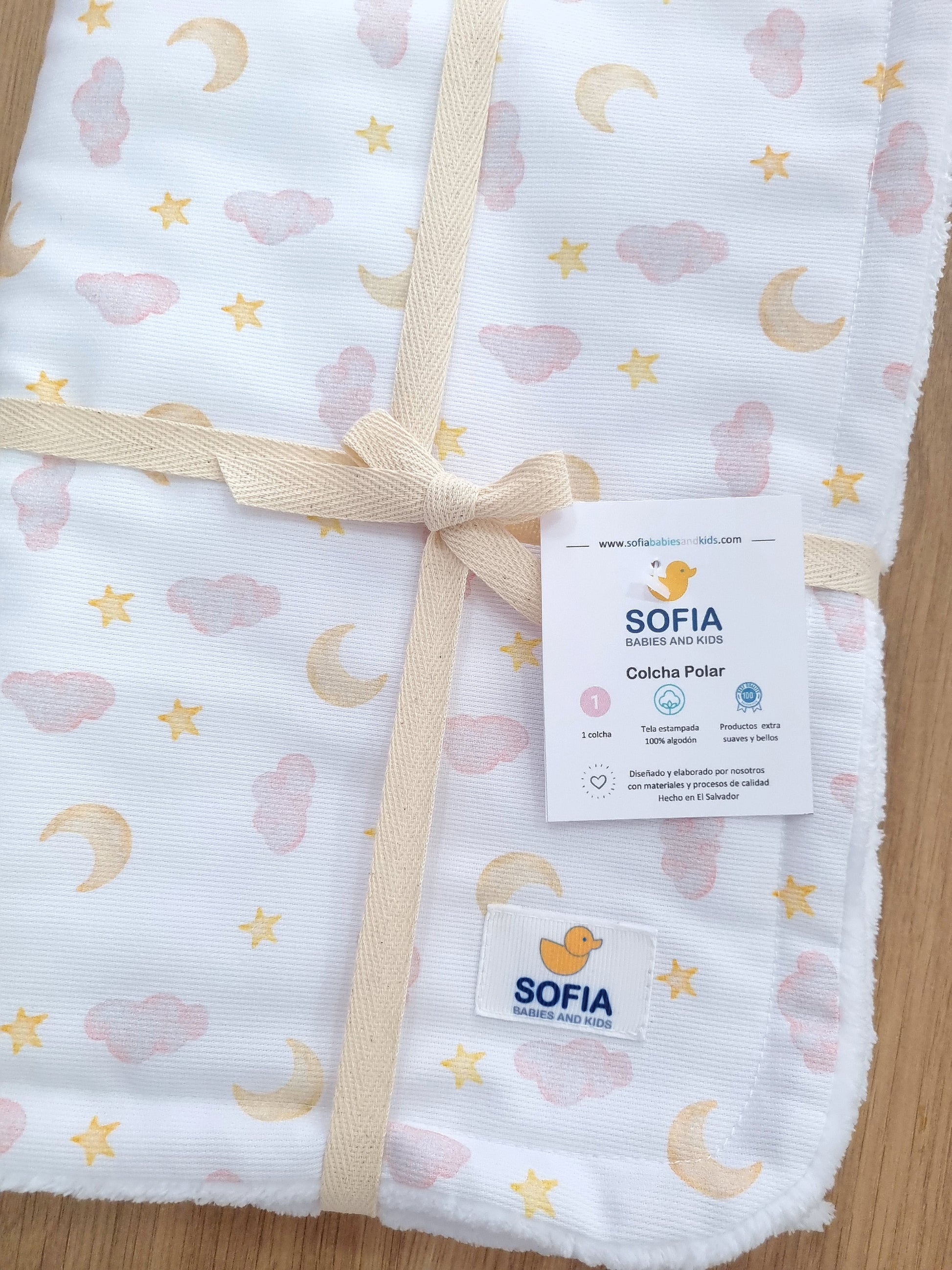 Colcha liviana que combina transpirabilidad y calidez para mantener a tus hijos cómodos, ideal para utilizarla como arrullo, para cubrir al bebé en su cunita o para ir de paseo. Con hermosos estampados que combinan con todo. Tiene un lado estampado con tela 100% algodón y el otro lado con suave tela polar.