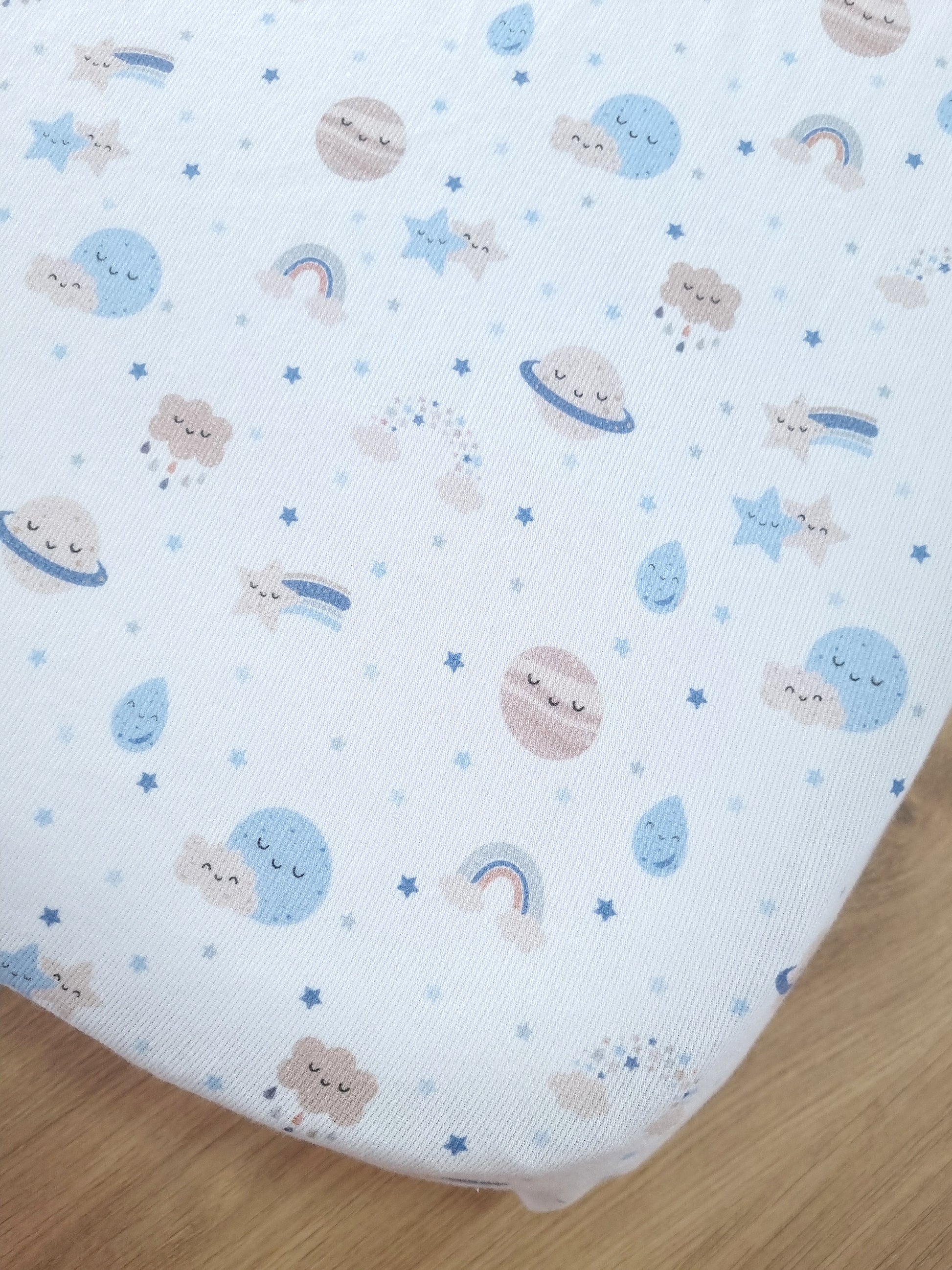Cubre colchón cuna. Planetas Azules