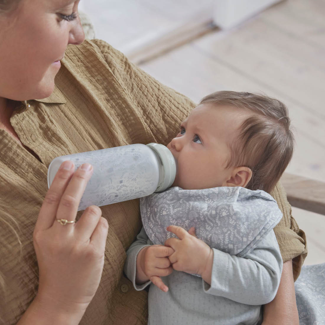 os biberones de vidrio de Elodie están hechos de vidrio de borosilicato resistente a altas temperaturas con una carcasa de silicona de grado alimenticio. Este material los hace ligeros, duraderos y resistentes a los arañazos. El vidrio está naturalmente libre de sustancias nocivas y el biberón puede soportar temperaturas desde la congelación hasta la esterilización en agua hirviendo. La tapa antipolvo evita la contaminación de la tetina por el aire, y el diseño de cuello ancho facilita la limpieza del biberón.