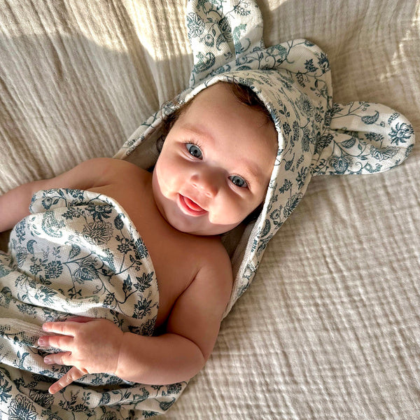 Envuelve a tu bebé con esta adorable toalla con capucha después del baño para ofrecerle la combinación perfecta de funcionalidad y comodidad. Hecha con tela de rizo absorbente de alta calidad por un lado y terciopelo suave por el otro, te envuelve con una cálida sensación. Pero la gran diferencia reside en la atención al detalle y su encanto.