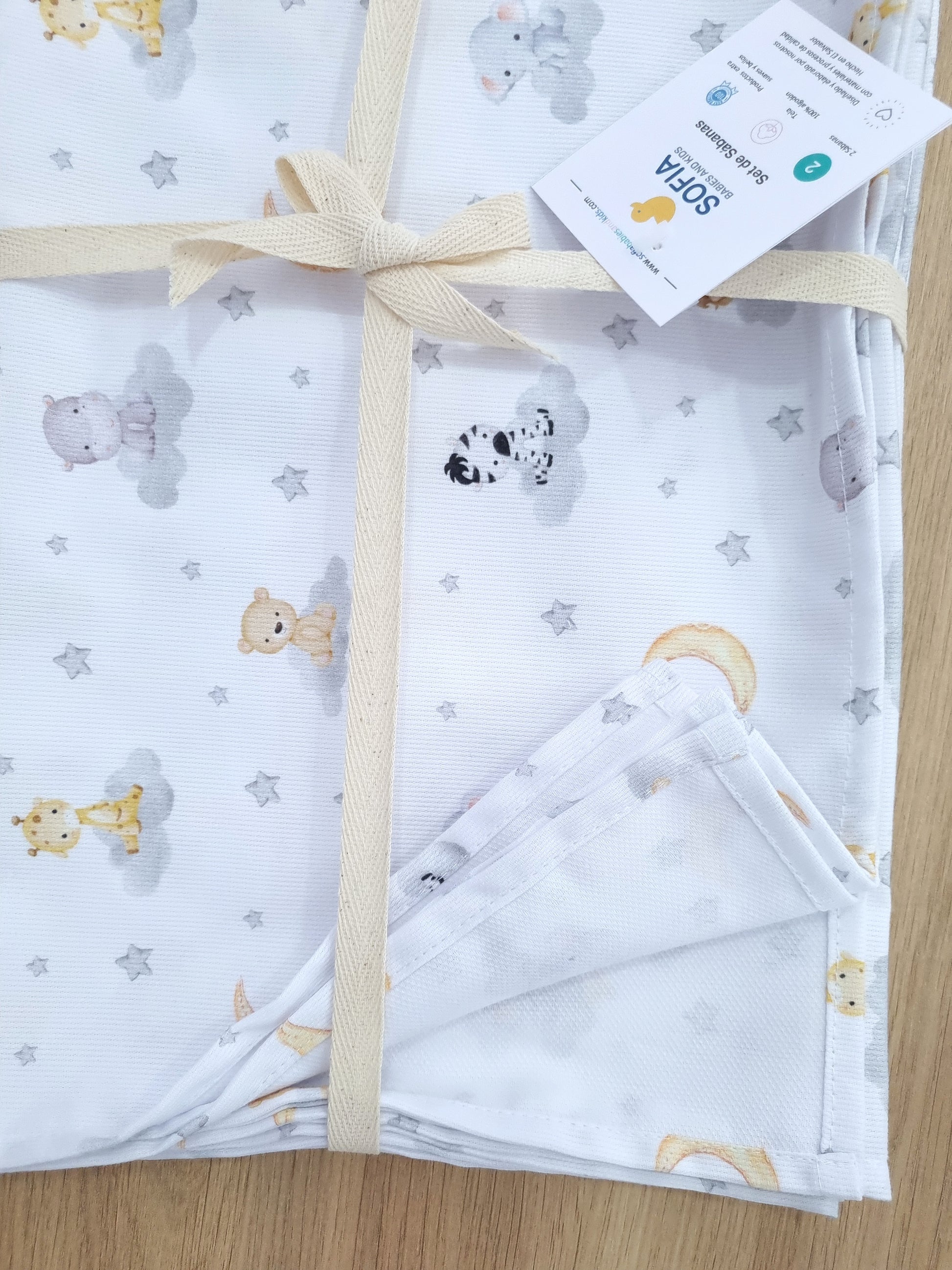 Sábanas frescas 100% algodón, perfectas para mantener a tu bebé fresquito y cómodo, ideal para utilizarlas como arrullo, para cubrir al bebé en su cunita o para ir de paseo. Con hermosos estampados que combinan con todo.