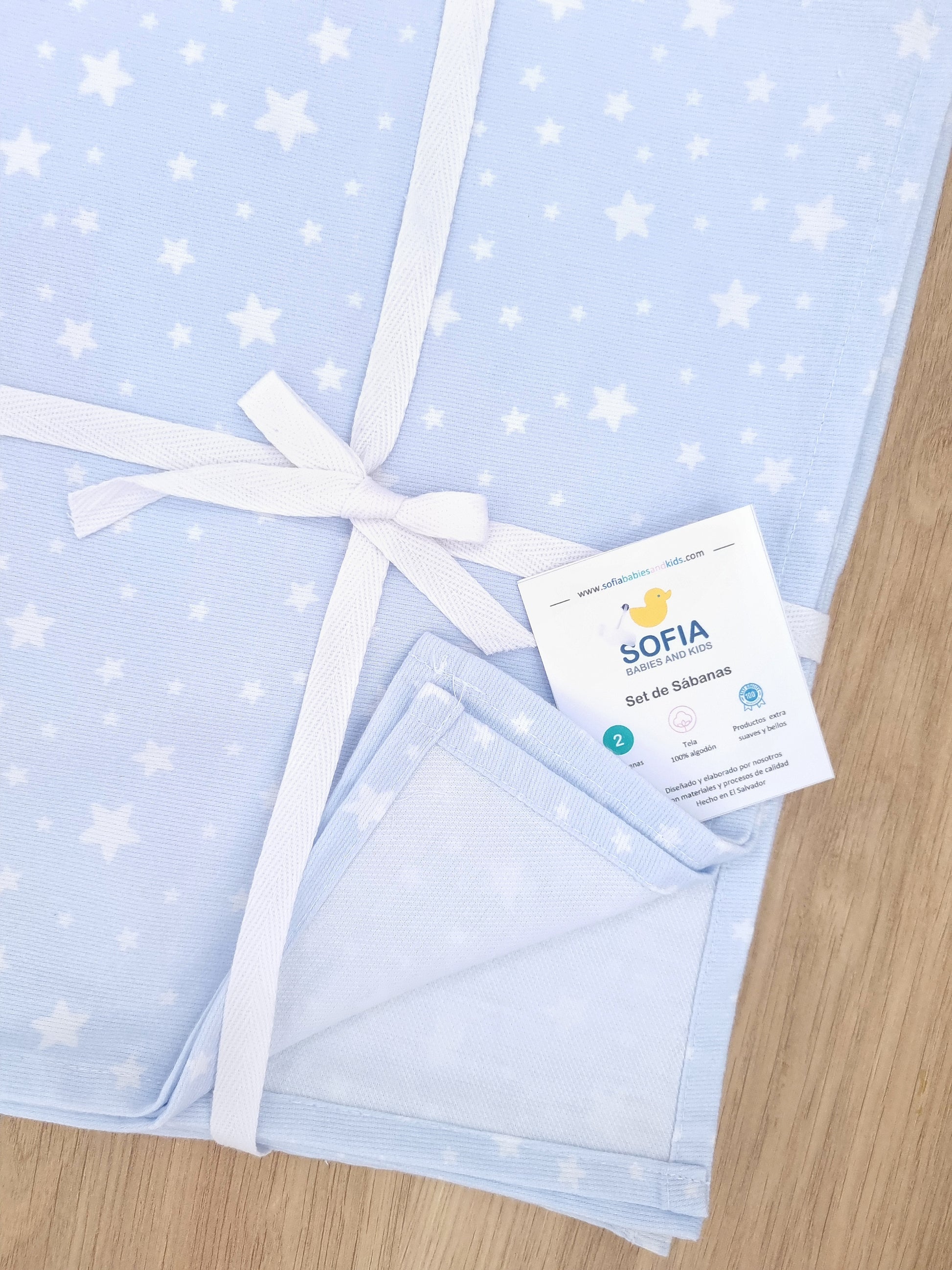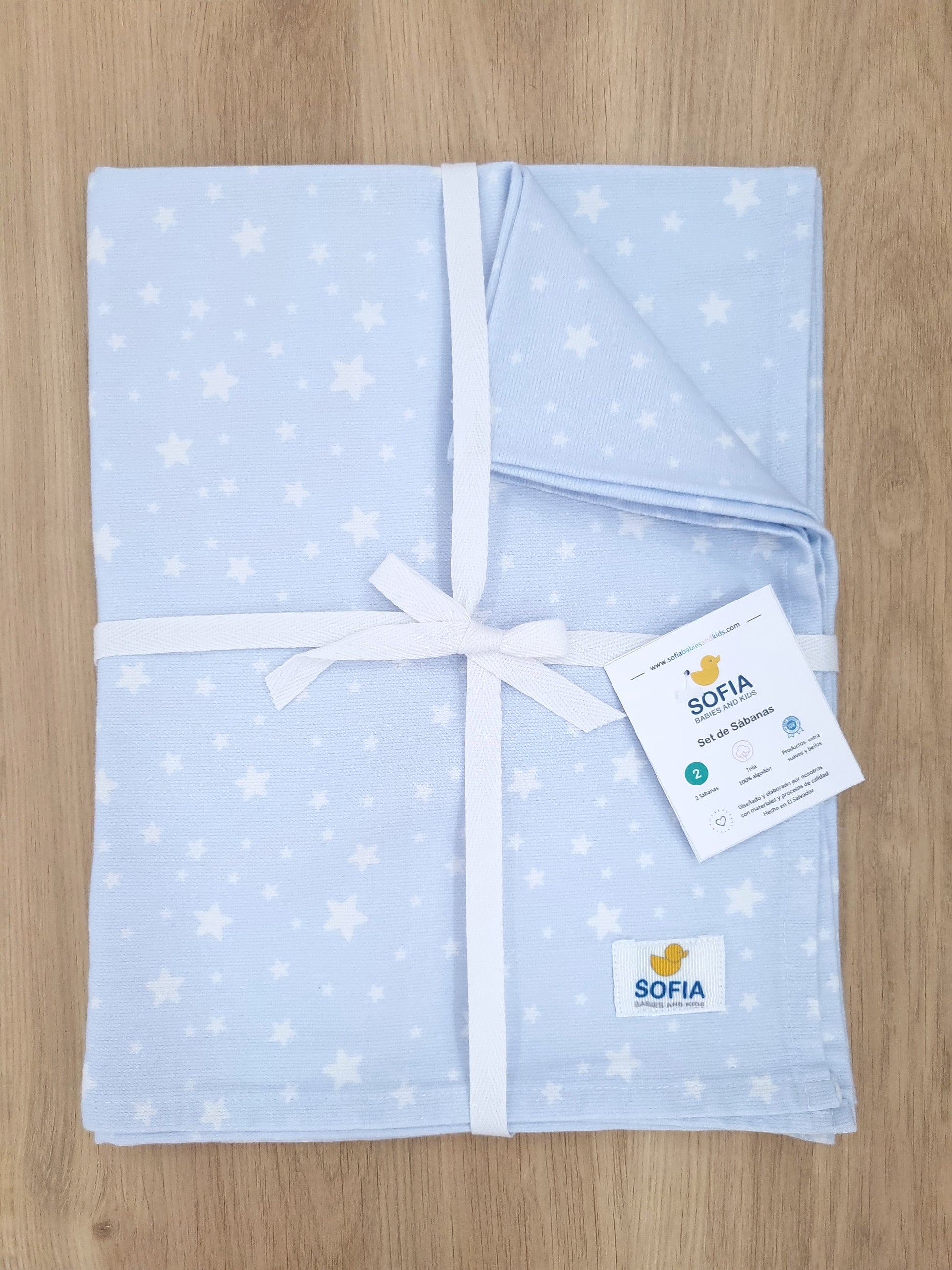 Set de 2 sábanas frescas. Azul Estrellas Blancas