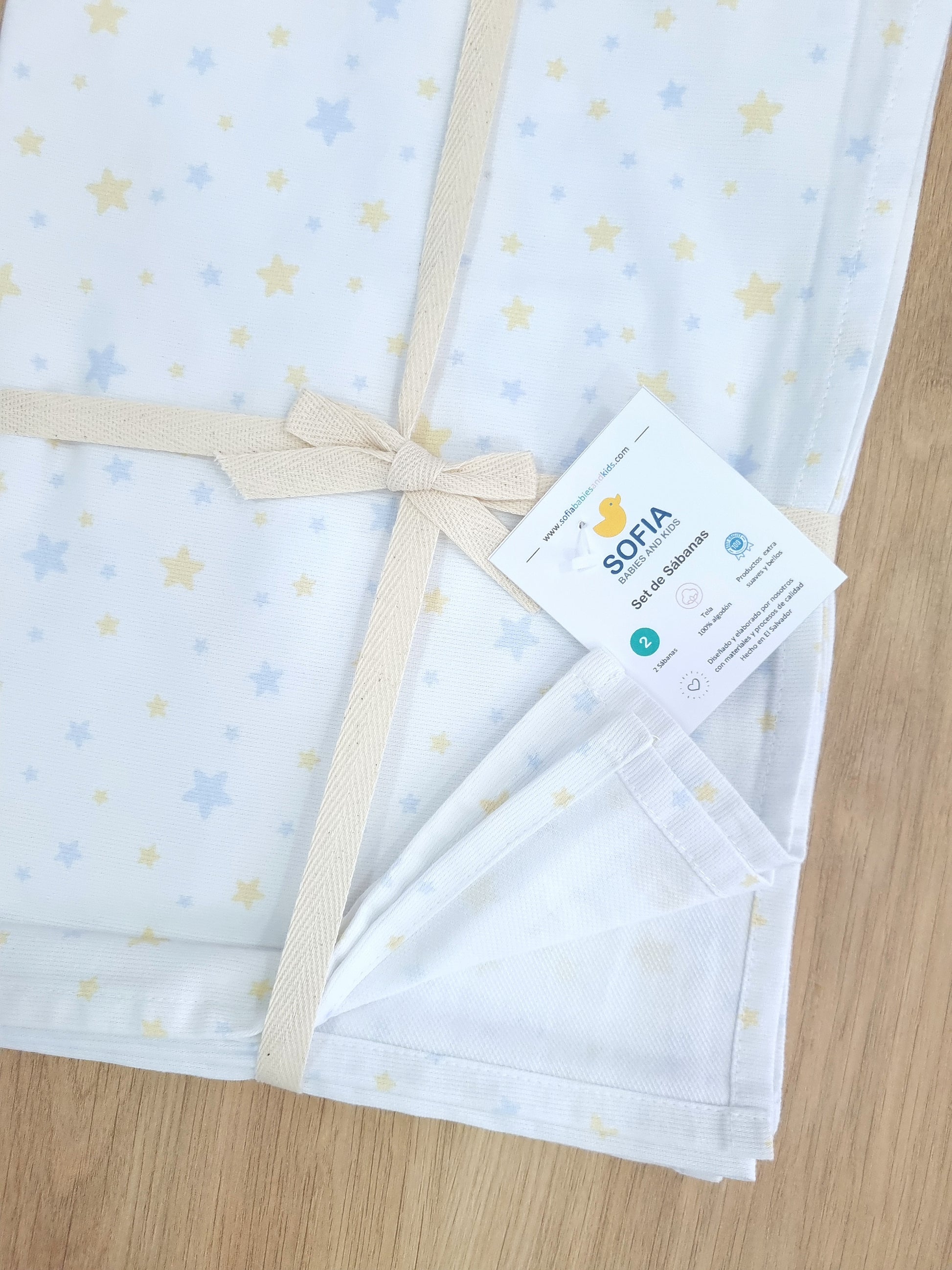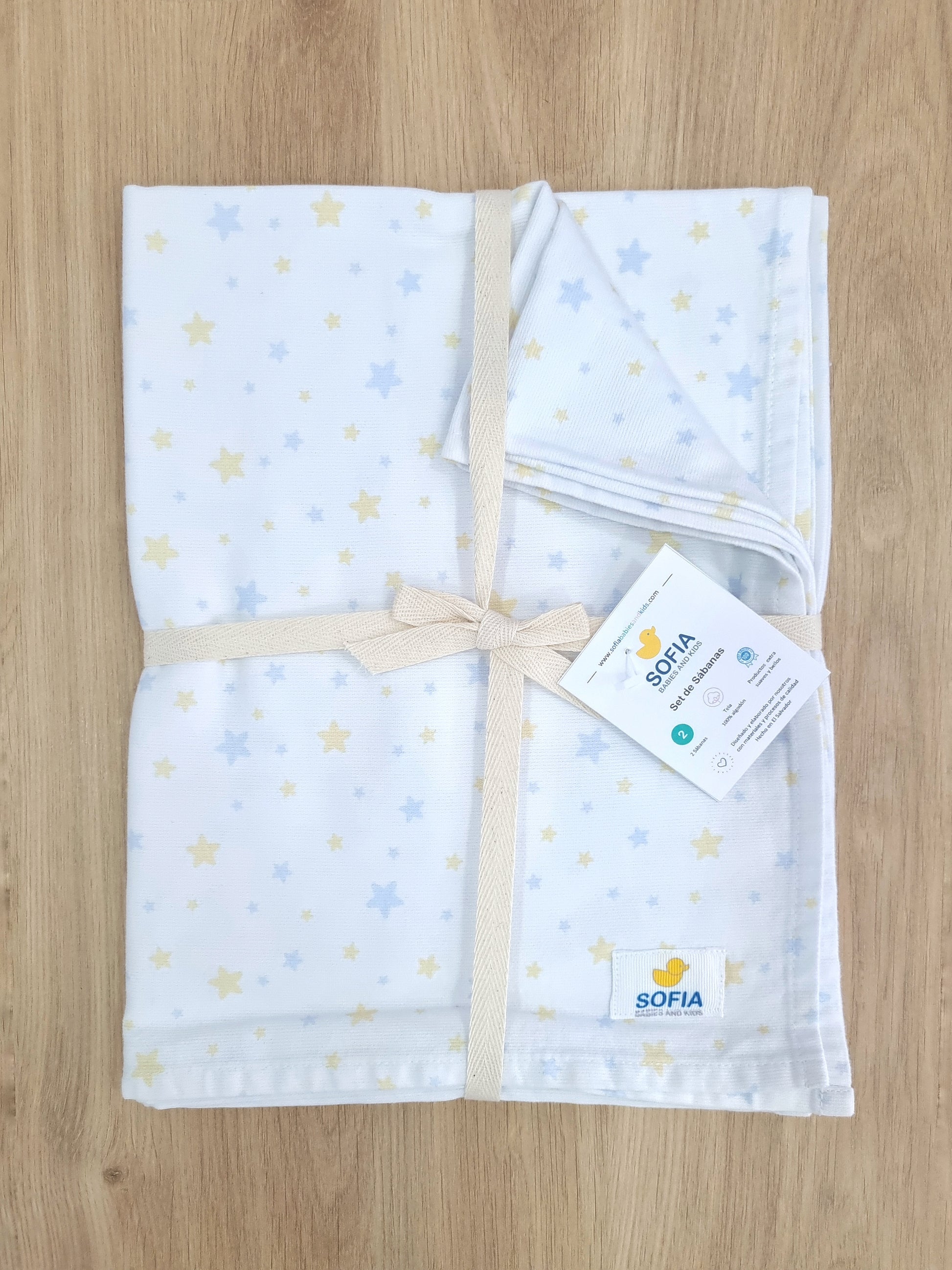 Set de 2 sábanas frescas. Estrellas Azul Amarillo