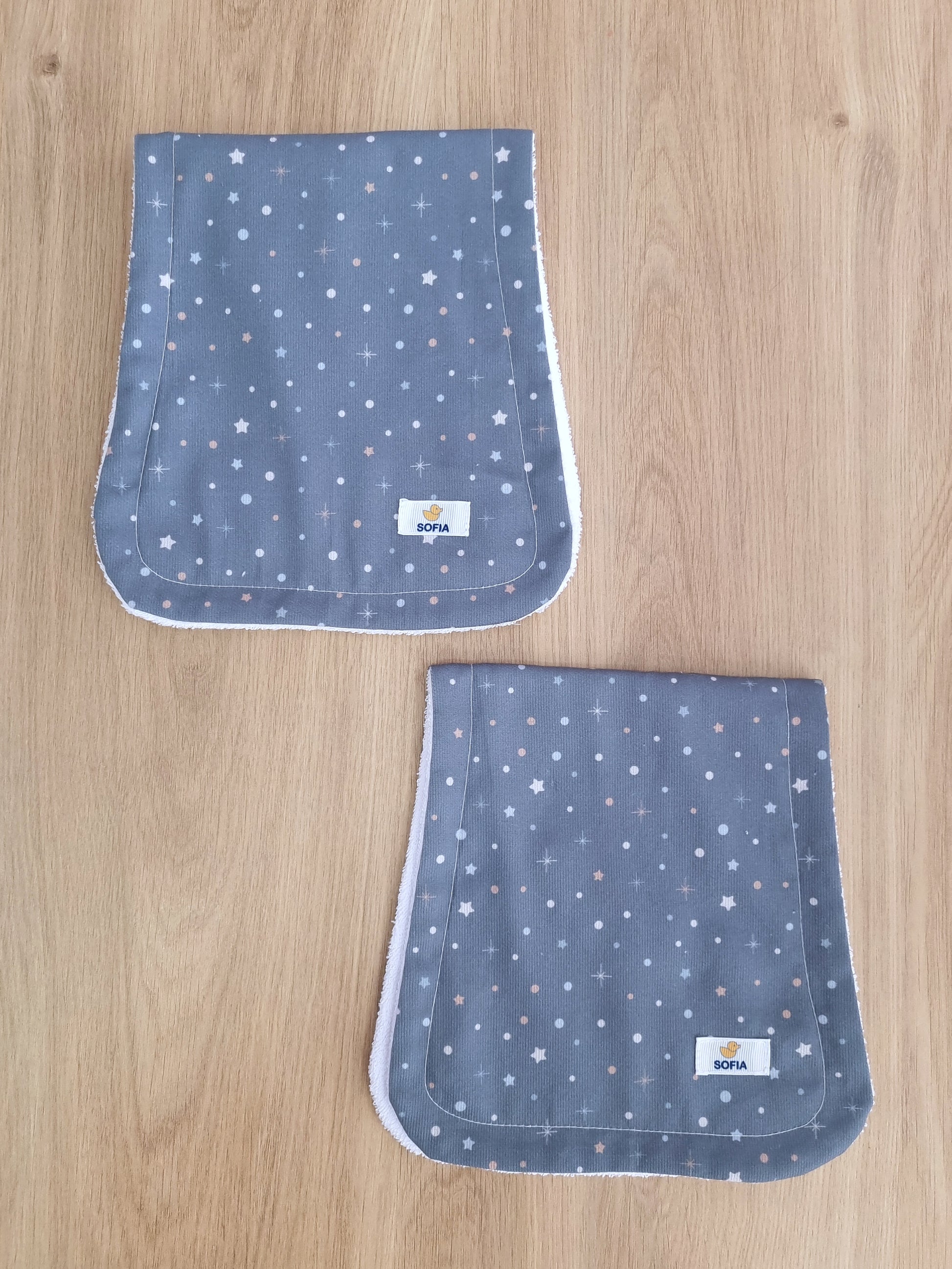 Set de 2 saliveros. Son un verdadero elemento esencial para el primer año, nuestras toallas saliveras son amplias y protegen la ropa de los padres de babas, manchas y regurgitaciones y te servirán para limpiar también a tu bebé como una toallita de mano.
