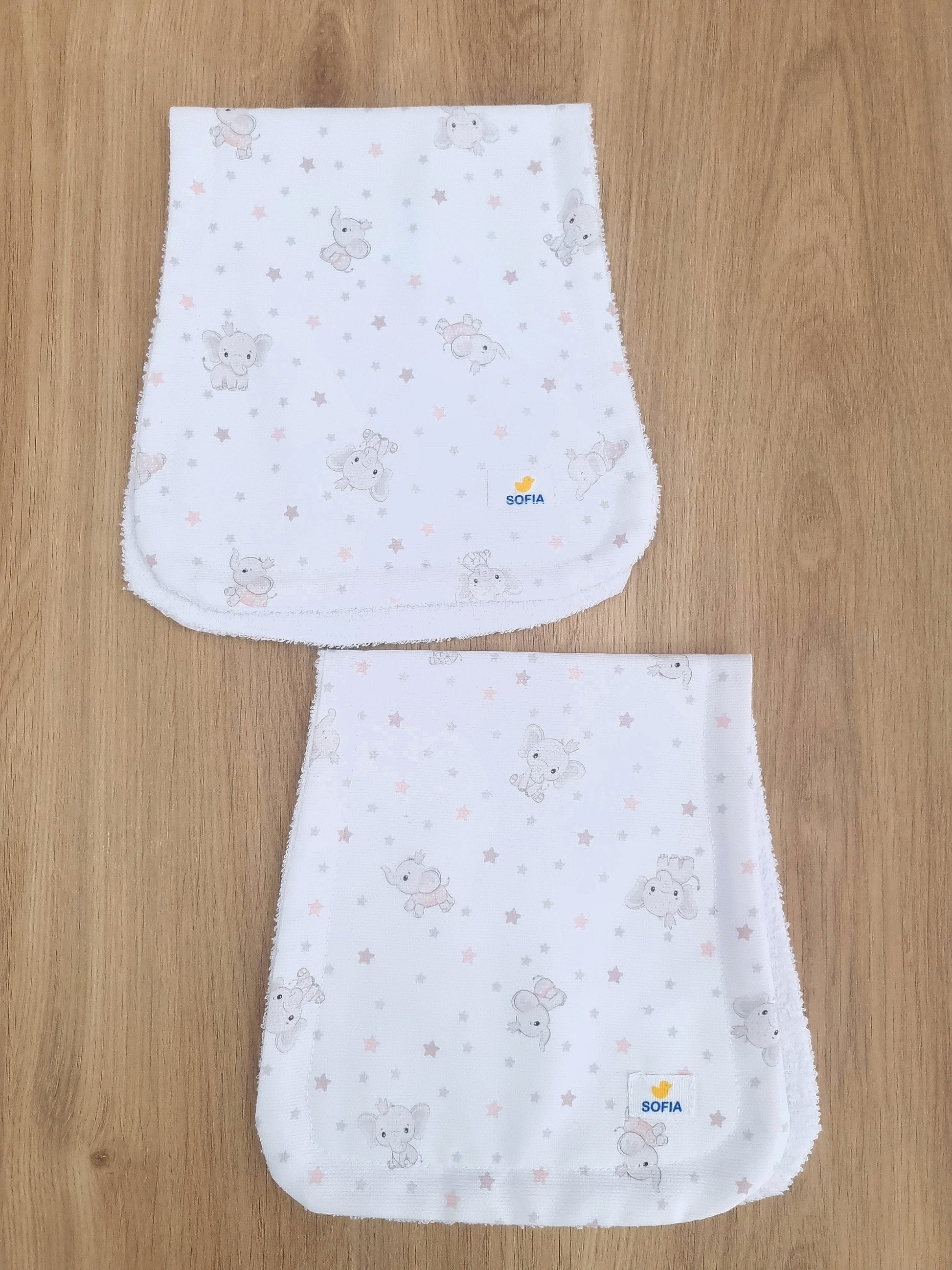 Set de 2 saliveros. Elefantitos Rosa