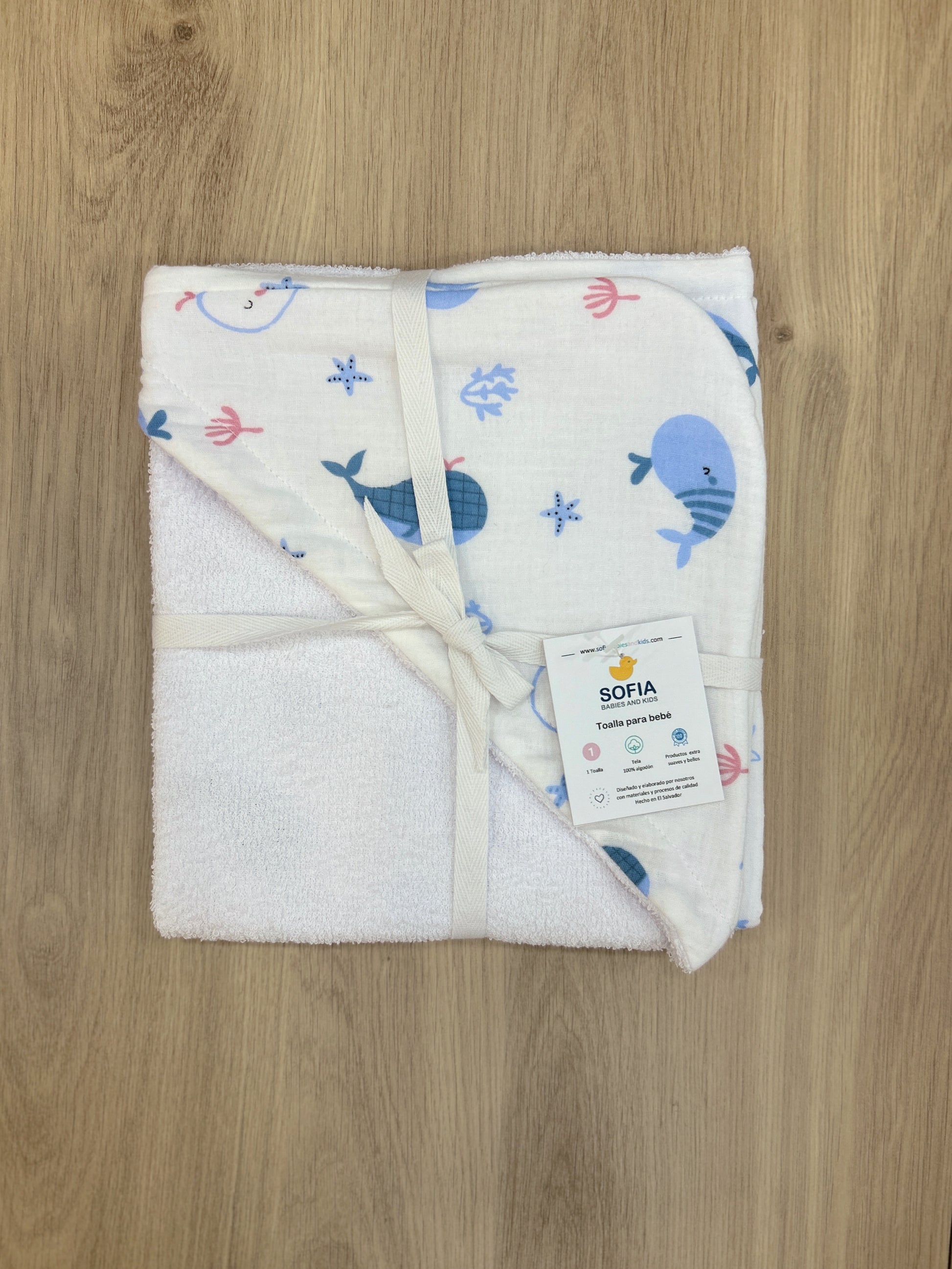 Toalla para bebé de 0 a 1 Ballenita Azul BB